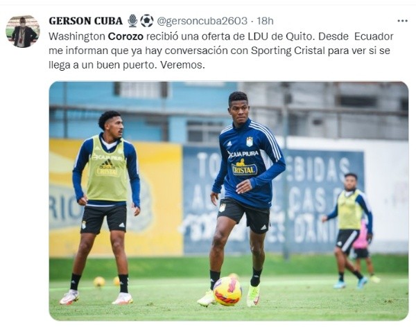 Finalmente, el delantero ecuatoriano viene entrenando en La Florida, pues Sporting Cristal es dueño de la carta pase del jugador. Se indicó que se habría ofrecido al futbolista a Flamengo de Brasil, algo que quedó en el olvido, luego de la posibilidad de volver a su país y jugar por el LDU de Quito, al delantero no le faltan propuestas y es muy probable que su próximo destino sea el país Tricolor.