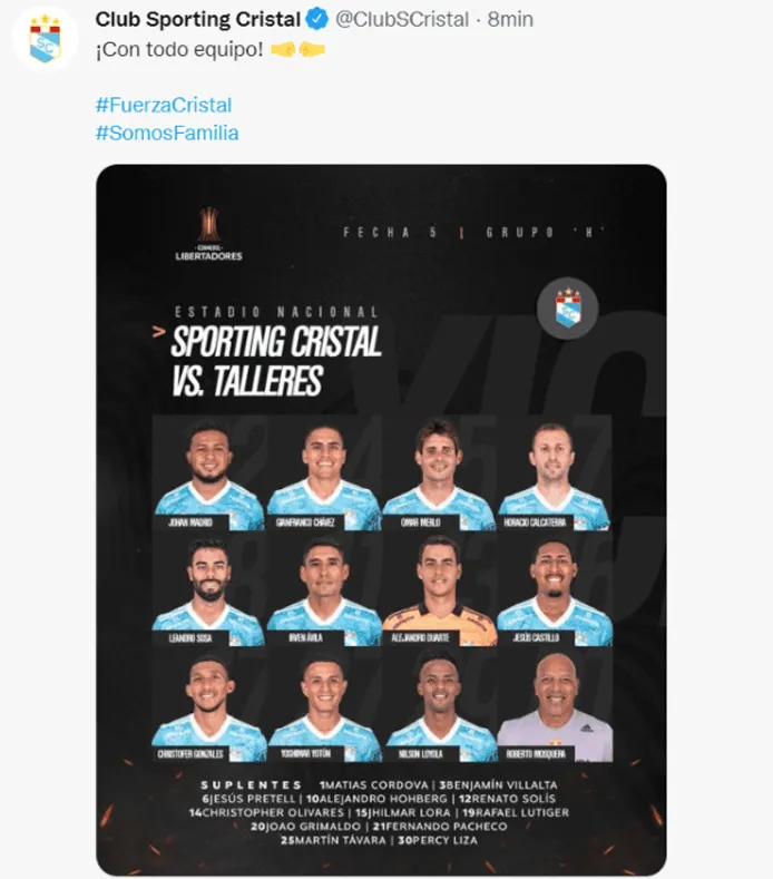 Sporting Cristalpodría despedirse este martes de laConmebol Libertadores 2022, debido a que solo cuenta con una unidad en el Grupo H y porque necesita de otros resultados para seguir en competencia. Sin embargo, aún tiene chances de quedarse con el tercer lugar para disputar la Conmebol Sudamericana 2022, pero para ello deberá conseguir los tres puntos esta noche en el Estadio Nacional.