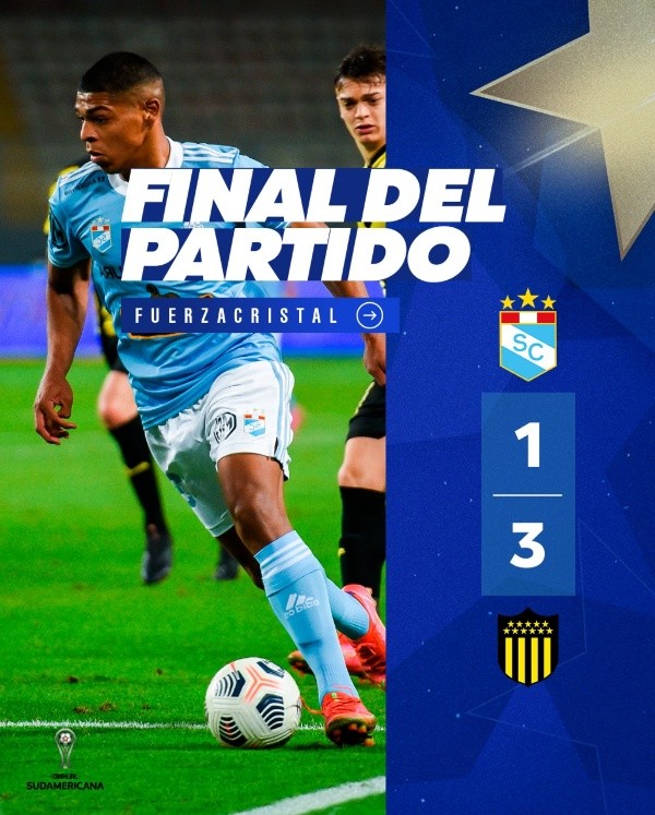 El descuento de Sporting Cristal (90′) cayó en los minutos finales. Por obra del defensa central argentino, Omar Merlo. Lo cual termina siendo una derrota, pero a ‘los celestes’ le pueda dar una luz de esperanza. Casi ni lo pudieron celebrar, el encuentro estaba perdido.