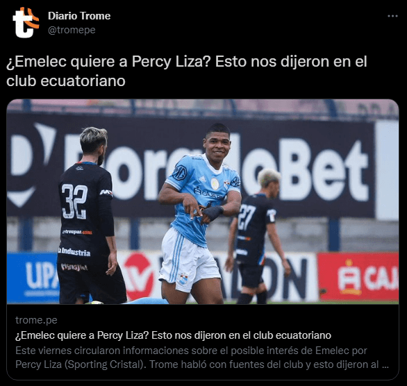 Porque supuestamente nació el interés de Emelec por esta joven promesa. Eso se habló en esta semana. Al punto de colocarlo como una de las obsesiones del equipo ‘eléctrico’. Sin embargo, todo se derrumbó tras una investigación hecha por el Diario ‘El Trome’. Quienes fueron a la fuente directa, y la respuesta fue la siguiente.