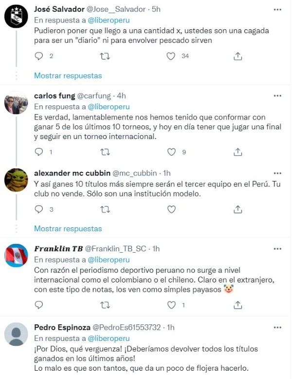Aunque, los usuarios en redes sociales criticaron la forzada comparación realizada por el medio peruano. No teniendo un punto en común, ni un criterio para hacer el paralelismo, el diario deportivo Líbero recibió varias críticas en Twitter por intento de paridad.