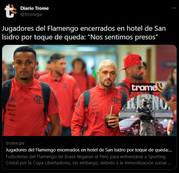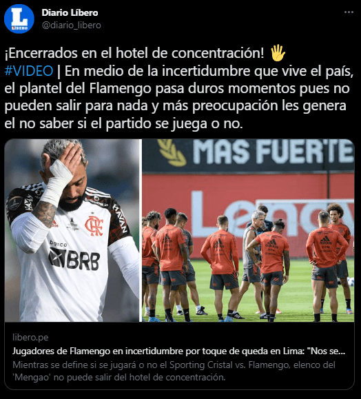 “En el plantel nos dicen ‘estamos encerrados, nos sentimos presos en Lima y por ahora no sabemos si el partido se juega a puertas cerradas’ que es lo que en este momento está promoviendo la Conmebol a partir de lo que le confirmen los integrantes de la seguridad de Perú para que el partido con Sporting Cristal se juegue a puertas cerradas”. Menciona el comunicador deportivo enviado desde Argentina.