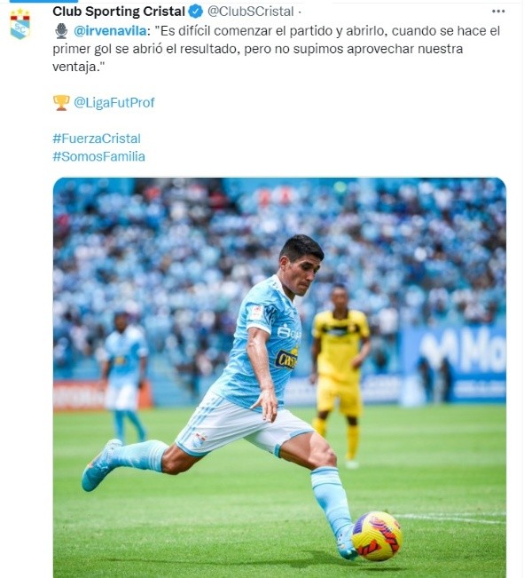 Los dirigidos por Carlos Silvestri salieron al Alberto Gallardo a dar lucha y tratar de quedarse con los tres puntos, en la primera parte tuvieron algunas situaciones que pudieron ponerlos adelante en el marcador e Irven Ávila lo sabe: “Sí (nos costó el primer tiempo). Es difícil poder comenzar el partido y abrirlo. Yo creo que cuando se hace el primer gol por ahí se abre un poco el resultado, pero no supimos aprovechar eso. Hay que trabajar en eso y hay que corregirlo”, agregó el delantero de Sporting Cristal.