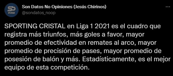 Porque los muchachos de ‘Son Datos No Opiniones’ una vez terminado el clásico del domingo, soltaron una información que remeció las redes sociales. Dejando entrever el gran presente de los ‘del Rímac’, frente a ‘los de La Victoria’. Puedes estar o no de acuerdo, pero es bastante cierto lo siguiente: