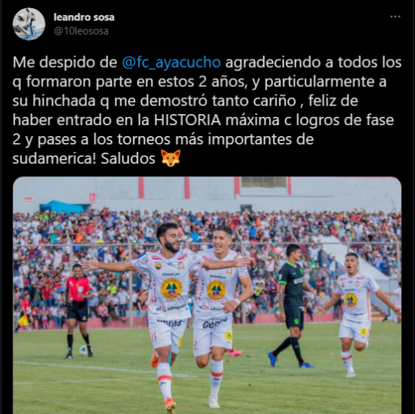 Pero este último fin de semana todo viene siendo sonrisa al parecer, porque se van conociendo algunas pistas de quien sería el siguiente fichaje en ‘tienda rimense’. Estamos hablando del ahora ex jugador uruguayo de Ayacucho FC, Leandro Sosa. Quien se volvió tendencia en redes sociales.
