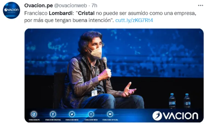 “En estos días hemos tenido una conversación con los dueños de Cristal sobre estos temas y ha sido interesante. Ellos han decidido ingresar a trabajar con la Federación Peruana de Fútbol para tratar de desde adentro generar cambios”, declaró el exdirectivo en Radio Ovación.