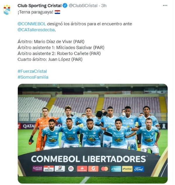 Cabe resaltar que Sporting Cristal viene bien anímicamente de cara a este encuentro, ya que el pasado viernes 22 de abril logró una victoria importante en la Liga 1 luego de derrotar por 1-0 a Cienciano en la altura del estadio Inca Garcilaso de la Vega de Cusco, esto ayuda a que los ánimo de los rimenses aumente y pueda ayudar para el encuentro frente a Talleres de Córdoba por la Copa Libertadores.