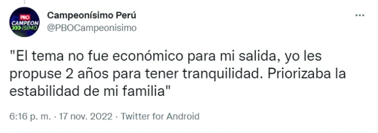 El ex volante de Sporting Cristal le dijo adiós al club con el que se alzó campeón en el 2020, 2018, 2016 y 2014, un hecho que ha dejado a muchos preguntándose cuál será su siguiente paso en su carrera. En ese sentido, vale destacar que ha iniciado conversaciones con la tienda ‘merengue’ para su posible traspaso. Un detalle importante es que llega como agente libre, ya que su contrato con los rimenses concluye a finales de este año. Además, como posee la nacionalidad peruana (incluso ha sido convocado en más de una oportunidad a la Selección Peruana) no ocuparía un cupo extranjero.