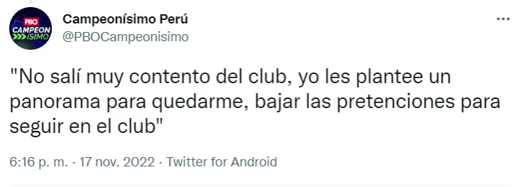 El volante nacionalizado peruano, contó que su salida del club se debe a que no se puso de acuerdo con los directivos Celestes y que no era el tema económico.