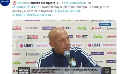 Universitario de Deportes y Sporting Cristal se enfrentaron por la fecha 15 de la Liga 1, el pasado 21 de mayo en el estadio Monumental.En un partido con un buen ritmo dentro del terreno de juego, concluyó igualado por 1-1. Roberto Mosquera declaró en conferencia de prensa, donde se refirió al error arbitral que pudo darle la victoria a los rimenses.