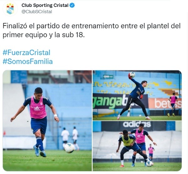 Sporting Cristal se viene preparando de cara a las finales frente a Alianza Lima, por lo que tuvo un partido de práctica en el Estadio Alberto Gallardo frente a la sub 18 celeste dirigida por el ahora director técnico Jorge Cazulo. Roberto Mosquera no quiere dejar escapar ningún detalle y cada vez pone más intensidad a los entrenamientos.