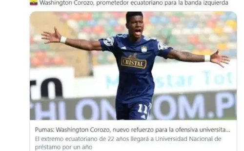 Y es que el diario Récord dio por hecho que Waschington Corozo irá a Pumas. El delantero de 22 años sería cedido por año a nada menos que el fútbol mexicano.