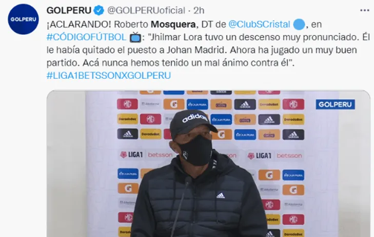 “Jhilmar tuvo un descenso muy pronunciado, él le había quitado el puesto a Madrid, ellos son muy amigos. Después, el rendimiento de Madrid en Copa Libertadores, lo versátil que se ha vuelto, de acuerdo a lo que viene jugará Lora o Madrid. Acá nunca ha habido un mal ánimo para Lora. Se dicen muchas cosas, las redes aguantan todo, pero tenemos que ponernos serios y no hablar sin base. Lora tiene un año más de contrato con Cristal y no se ha hablado con nadie para suponer que lo vamos a prestar”, agregó Roberto Mosquerasobre la situación de Lora.