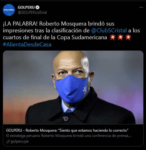 No hay imposibles cuando piensas que puede suceder un hecho en el último minuto. Roberto Mosquera como entrenador de Sporting Cristal se mostró contento por la clasificación a la siguiente ronda de la Copa Sudamericana. En conferencia de prensa definió cada pregunta, fiel a su estilo.