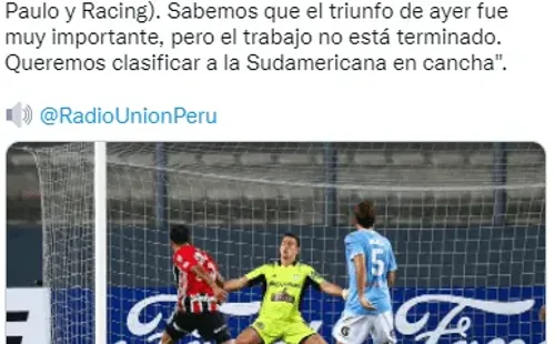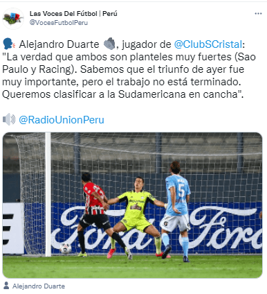Sabe lo que quiere e irá por ello. Alejandro Duarte habló con ‘Las Voces del fútbol’, mostrando determinación a la hora de explicar sus objetivos como jugador de Sporting Cristal. Ve viable llegar a la Copa Sudamericana sin esperar resultados de terceros. Confía en su capacidad y en todos sus compañeros.