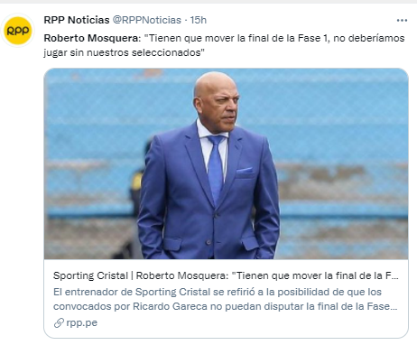 Sobre Ricardo Gareca tuvo palabras de elogio una vez más, Mosquera entiende que todo lo cosechado en los clubes será para bien del Perú: “El señor Gareca es entrenador de Selección y todos trabajamos para él, nosotros trabajamos por tener a los jugadores de mejor manera para que él voltee y vea alternativas en Sporting Cristal. Esa transparencia la quiero del otro lado, del señor (Víctor) Villavicencio y que busque una fecha donde podamos jugar nosotros con los seleccionados, nos estamos jugando la Copa Libertadores del próximo año y el prestigio que significa jugarla”.