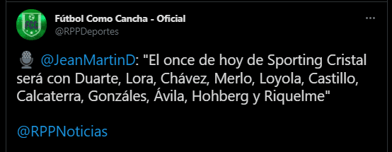 “El once de hoy de Sporting Cristal será con Duarte, Lora, Chávez, Merlo, Loyola, Castillo, Calcaterra, Gonzáles, Ávila, Hohberg y Riquelme”.Y después el mismo Jean Martín detalló lo sucedido, para que Martín Távara no esté en consideración del entrenador principal.