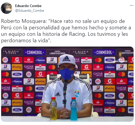 La conferencia de prensa que realizó Roberto Mosquera (Sporting Cristal) fue un movimiento de emociones importantes. Respondió cada detalle a su estilo, empezó muy reflexivo, pero no se olvidó de (según él) el trámite percibido desde su zona de trabajo en la banca de suplentes frente a Racing Club.