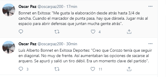 Tras esto en ‘Exitosa Deportes’ buscaron la comunicación de un referente como delantero y definidor, ahí apareció desde Argentina Luis Bonnet: “Creo que Corozo tenía que seguir en diagonal. No muy de frente. Así aumentaban las opciones de sacarse al arquero. Se apuró y salió un tiro débil. Era un momento clave del partido”.