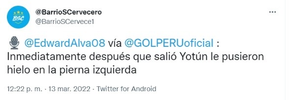 La noticia puso en alerta a todos los hinchas celestes, ya que ‘Yoshi’ podría haber salido por una posible lesión, lo cual no ha sido confirmado o también el hielo en la pierna del futbolista sería solo para bajar la carga que sumo en el cotejo contra Cantolao. Cabe resaltar que el volante no suma partidos oficiales hace meses y este cotejo con los celestes le habría podido costar un poco de manera física.