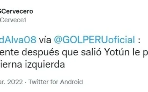 El encuentro terminó 2-2, algo que agarró por sorpresa a los celestes que iban arriba en el marcador por 2-0 y con mucha tranquilidad en su juego. Yoshimar Yotún fue sustituido en el minuto 55 por Jesús Castillo. El periodista de Gol Perú, Edward Alva, comunicó lo siguiente sobre el ex Cruz Azul: “Inmediatamente después que salió Yoshimar Yotún le pusieron hielo en la pierna izquierda”.