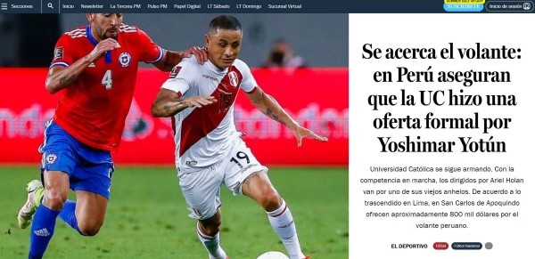 Según la prensa chilena, los medios de comunicación de ese país manifiestan que la Universidad Católica habría realizado una oferta de 800 mil dólares por el pase de Yoshimar Yotún. En ese sentido, el cuadro extranjero ya estaría en conversaciones con Sporting Cristal.