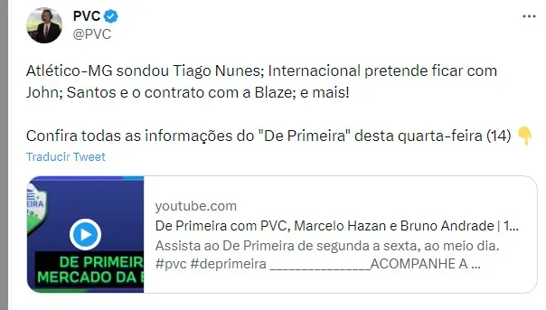 Pese a que Tiago Nunes fue sondeado, no pasó a ser prioridad para Atlético Mineiro. Es más, los medios locales de Brasil, apuntan que Bruno Lage, tendría todos los votos para asumir las riendas del equipo.