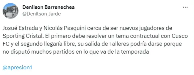 Tal cual lo informó el periodista Denilson Barrenechea en su cuenta de Twitter. Los dos nombres fueron alcanzados a la directiva y están en la consideración.