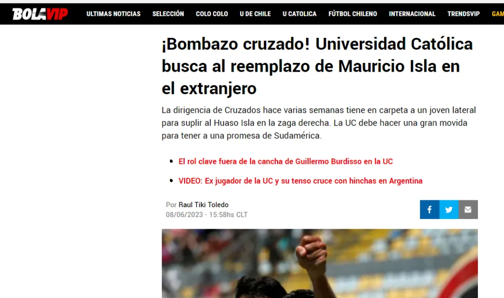 Sin embargo, desde Chile su nombre viene sonando para reemplazar a uno de los cracks de ese país. Estamos hablando de Mauricio Isla, que repentinamente dejó la Universidad Católica.