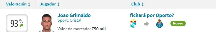 Esta información fue dada por el portal Transfermarkt, en la que indica que el futbolista rimense tiene el 91% de posibilidades de cambiar de camiseta. Algo que para algunos hinchas sería lamentable, porque aún desean que permanezca en el plantel.