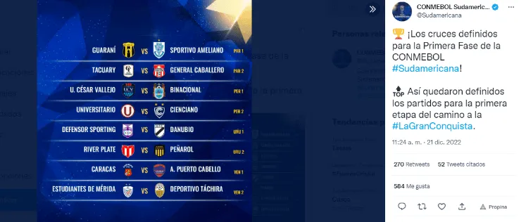 FOTO: TWITTER COPA SUDAMERICANA