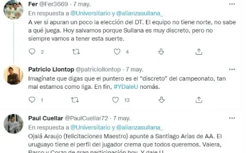 Los fanáticos de Universitario de Deportes han expresado su desazón con Ángel Cayetano como back central y en las redes sociales han comentado lo siguiente: “Ángel Cayetano chau, urgente contratar un volante central y si no hay para defensas, dejen a Leonardo Rugel y Piero Guzmán, basta de argollas”, “Ángel Cayetano a la banca. como dejaron ir a Leonardo Rugel, no puede ser”, fueron algunos comentarios de los hinchas en la cuenta de Twitter de los ‘Merengues’.