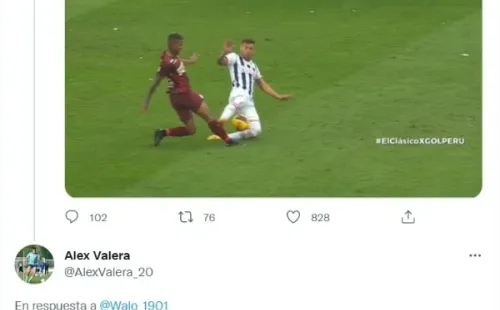 Sucediendo todo en el terreno de lo virtual, Alex Valera tuvo un momento desafortunado con un hincha de Alianza Lima. Publicando el usuario @Walo_1901 la captura de la falta del defensor de Alianza Lima Gino Peruzzi sobre el delantero de Universitario de Deportes Andy Polo, una frase encendió la situación.