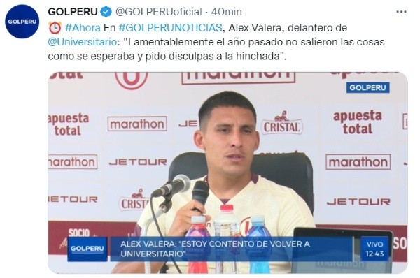Tomando la palabra durante la tarde de este miércoles 11 de enero, el delantero Alex Valera se dirigió a la prensa peruana. Hablando sobre cómo se dio su salida de Universitario de Deportes, el atacante hizo una reflexión sobre lo que fue su partida la temporada 2022.