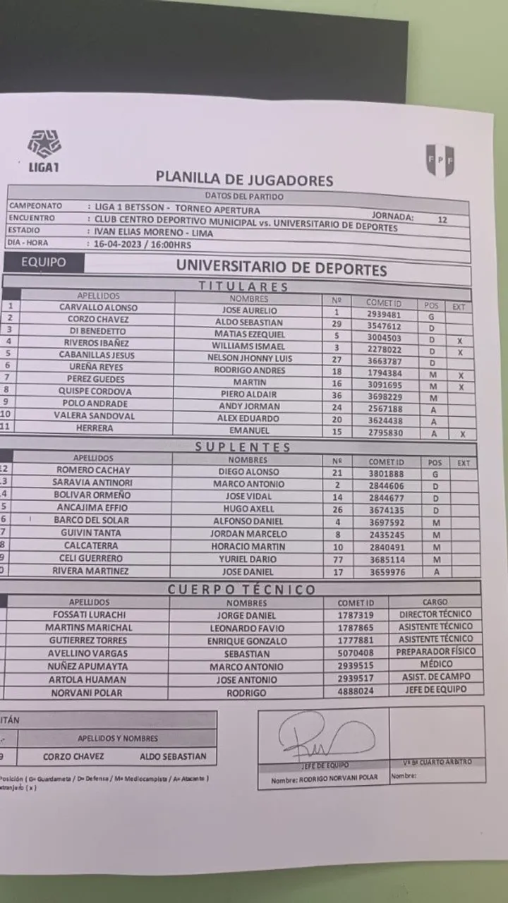 Debido a esto, es que su entrenador Jorge Fossati ha preparado un once que los ayude a no perder ni un punto y que puedan sumar de a tres en la tabla de posiciones. Por su parte, los cremas van de la siguiente manera: Carvallo, Corzo, Riveros, Di Benedetto, Polo, Cabanillas, Ureña, Pérez Guedes, Piero Quispe, Valera y Herrera.