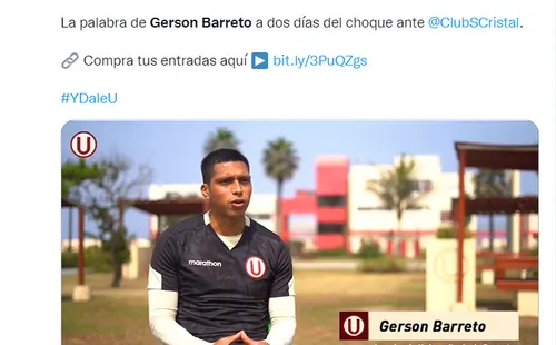 Gerson Barreto, volante de Universitario de Deportes, habló sobre el encuentro que sostendrán este fin de semana anteSporting Cristal,y señaló que deben ver cómo contrarrestar las virtudes de los ‘celestes’. Cabe resaltar que el equipo de Ate viene siendo dirigido por Jorge Araujo, técnico interino que sigue invicto desde queasumió el cargotras la salida de Álvaro Gutiérrez.