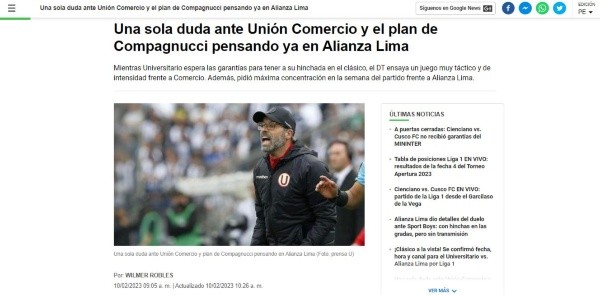 Acá aparece la pepa, el detalle principal, el cual sin duda es el corazón de este artículo: “Hoy, el DT define el once, en el que la variante obligada será decidir si el paraguayo Williams Rivero o Marco Saravia juegan por el suspendido Piero Guzmán”. A falta de esa confirmación, todo está preparado para jugar contra El Poderoso de San Martín.