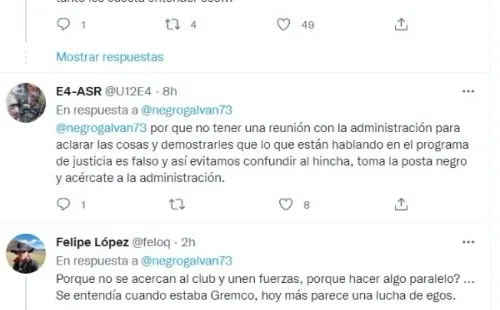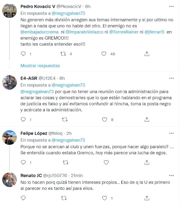 La mayoría de hinchas ‘cremas’ piensan en que esto no debería dividir a ambas instituciones, Universitario de Deportes y Embajadur Crema, ya que al fin y al cabo ambos luchan para lograr el mismo objetivo, ayudar al club para que se estabilice económicamente y en general. “Por qué no tener una reunión con la administración para aclarar las cosas y demostrarles que lo que están hablando en el programa de justicia es falso y así evitamos confundí al hincha, toma la posta negro y acércate a la administración”, “Por qué no se acercan al club y unen fuerzas, porque hacer algo paralelo? Se entendía cuando estaba Gremco, hoy más parece una lucha de egos”, fueron lo que dijeron algunos aficionados del club.