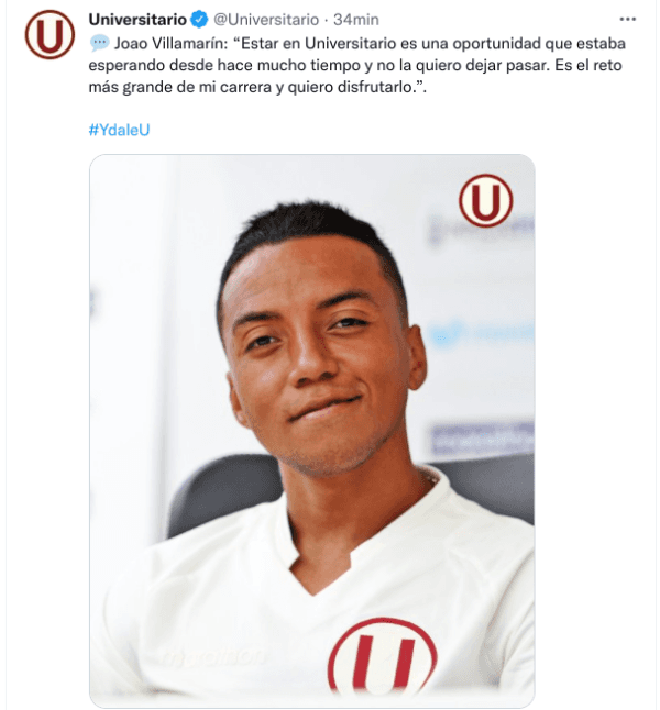 “Estar en Universitario es una oportunidad que estaba esperando desde hace mucho tiempo y no la quiero dejar pasar. Es el reto más grande de mi carrera y quiero disfrutarlo”, comenzó quien agregó: “Siempre quise estar acá y lo voy a asumir de la mejor manera, el club y la hinchada merecen grandes cosas”. “Nunca he prometido goles. Lo que si prometo es esfuerzo y sacrificio”, concluyó ¡Llegaron los refuerzos!