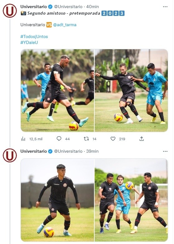 Por el lado de Universitario de Deportes, por las fotos proporcionadas por sus redes sociales se puede deducir que jugó con sus fichajes: el mediocampista Horacio Calcaterra y el delantero Emanuel Herrera. No pudiendo ninguno marcar la diferencia, el cuadro drema está próximo a realizar un par de amistosos más.