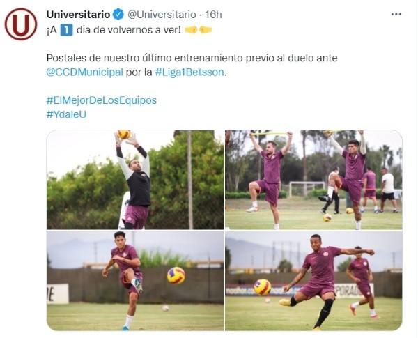 Eliminado de la Copa Libertadores entre semana a manos de Barcelona de Ecuador, el plantel de Universitario de Deportes se enfocará en conseguir el campeonato de la Liga 1. No estando tan alejado de los puestos de vanguardia, para continuar en la lucha por la cima del Torneo Apertura tiene que vencer esta tarde a Deportivo Municipal.