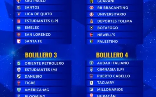 Separando por ránking a los 32 equipos en 4 bombos de 8 clubes, Universitario de Deportes estará en el bombo 2 y la Universidad César Vallejo en el 3. Además, una de las condiciones es que dos equipos de un mismo país no podrán estar emparejados en la misma serie.