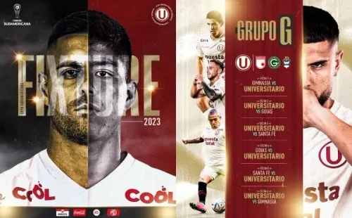 Terminando en el grupo G de la Copa Sudamericana 2023, Universitario de Deportes quedó emparejado con los planteles de Gimnasia y Esgrima La Plata de Argentina, Independiente Santa Fe de Colombia y Goiás de Brasil.