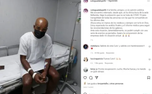 No es una semana feliz para Luis ‘Cuto’ Guadalupe. Acostumbrado a siempre estar contento, el exdefensa de Universitario de Deportes utilizó sus redes sociales para informar sobre un complicado momento que está viviendo: la internación en una clínica local. Revelando que no padece el temido covid-19, el también entrevistador, bailarín y empresario, comentó en redes sociales que todo está en las manos de los médicos y de Dios.