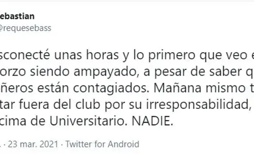 El pedido de los hinchas no solo es por la indisciplina, sino también por comprometer la salud de sus demás compañeros, ya que Aldo Corzo rompió con los protocolos sanitarios.