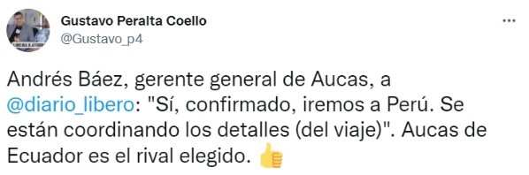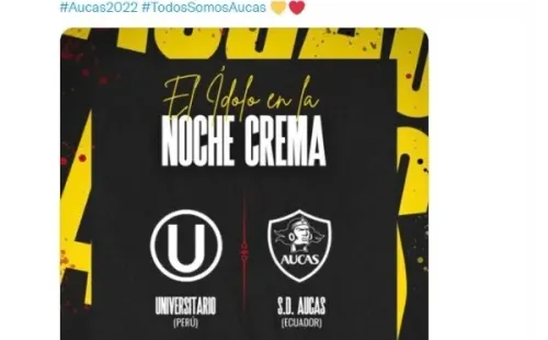 Así pues, ante las distintas voces que apuntaban a que Millonarios de Colombia seria rival de Universitario de Deportes para la Noche Crema 2022, el club Aucas de Ecuador difundió en sus redes sociales que será el contrincante del cuadro merengue para este sábado 29 de enero en el estadio Monumental. Con un post en su Twitter, la institución extranjero confirmó su presencia y, a la vez, reveló que será el primer desafío para la temporada 2022.