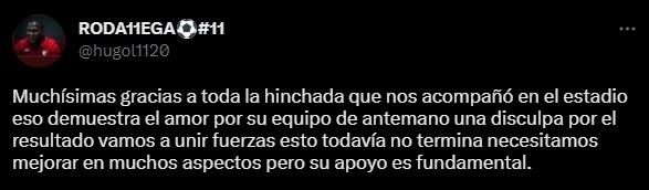 Finalmente, también se pudo ver como reflexionó Hugo Rodallega en sus redes sociales, tras elogios a Universitario de Deportes: “Muchísimas gracias a toda la hinchada que nos acompañó en el estadio. Eso demuestra el amor por su equipo, de antemano una disculpa por el resultado vamos a unir fuerzas, esto todavía no termina, necesitamos mejorar en muchos aspectos, pero su apoyo es fundamental”.