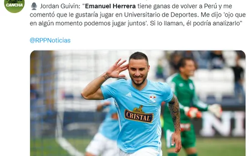 El joven mediocampista, Jordan Guivin, se unió recientemente a las filas de Universitario de Deportes para el Torneo Clausura y este jueves,reveló que Emanuel Herrera, quien fue su compañero en Celaya FC, le gustaría llegar al cuadro de Ate. Asimismo, señaló que el mismo atacante argentino, le aconsejó volver a la Liga 1.