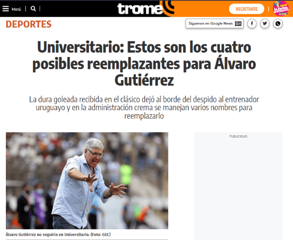 Universitario de Deportes en las próximas horas estará oficializando la salida del director técnico uruguayo, Álvaro Gutiérrez, quien es el principal señalado por la goleada recibida en el clásico del fútbol peruano. Alianza Lima venció por 4-1 en el ‘Estadio Monumental’.