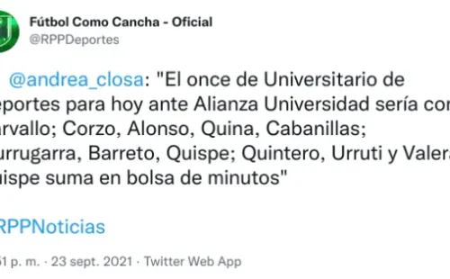 Para este partido, entonces, Gregorio Pérez pondrá al siguiente once: Carvallo; Corzo, Alonso, Quina, Cabanillas; Murrugarra, Barreto, Quispe; Quintero, Urruti y Valera. Ya se verá si les resulta. Hoy por hoy, ganar el imperativo en Ate.
